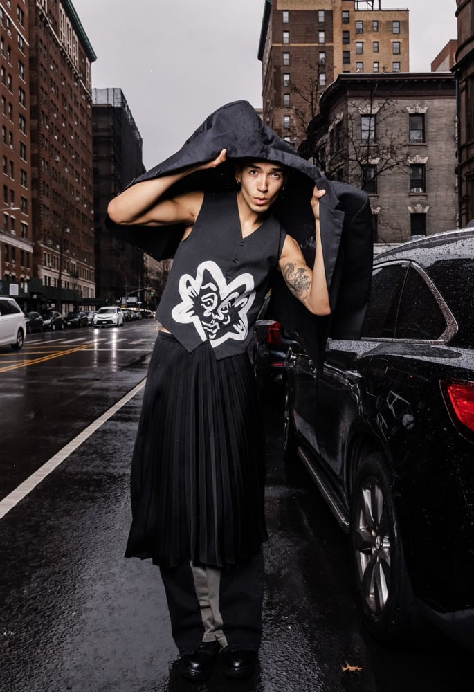 Suit Vest Adjustable belt strap Hand-painted Portrait on front Color: Black Shell Fabric: 100% Polyester Lining: 100% Polyester Dry Clean Only